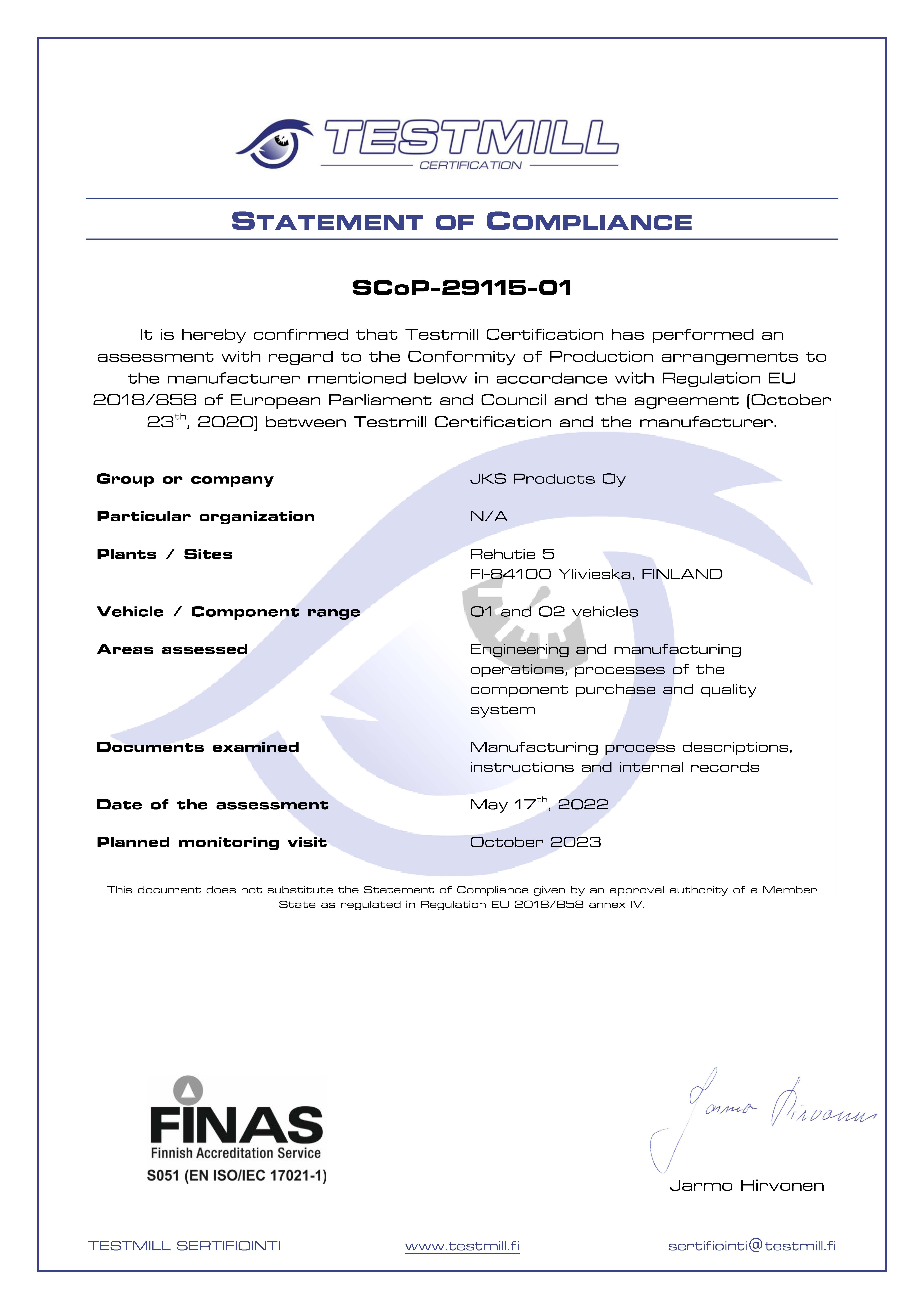 You’ll find more information of our Code of Conduct procedures and the compliance assurance issued by Testmill Certification through following links.
