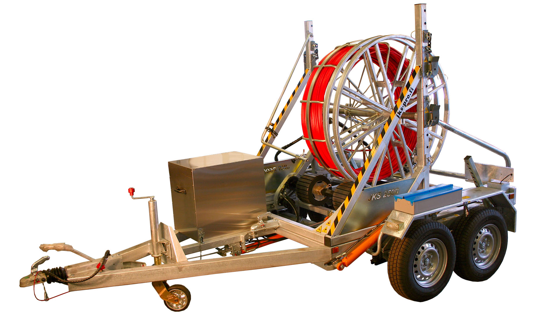 JKS 2500 on verkonrakentajan monitoimivaunu. Tukeva, kuumasinkitty runko on pitkäikäinen ja luotettava. Laadukkaat tekniset ratkaisut takaavat kelavaunun toimintavarmuuden myös ääriolosuhteissa. Monipuoliset lisävarustevaihtoehdot mahdollistavat vaunun käytön monissa erilaisissa työkohteissa.